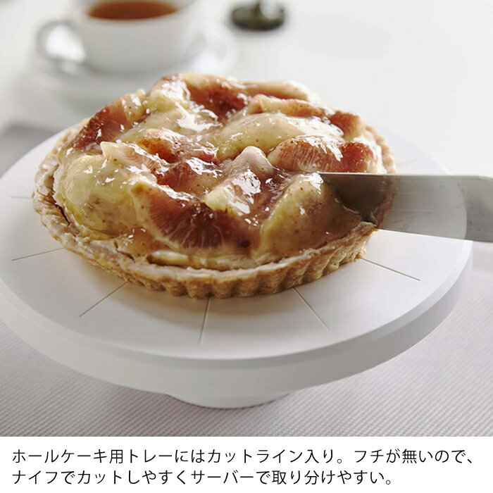 ケーキ側はケーキカット用のガイドライン付き、お菓子用はフチが付いています。